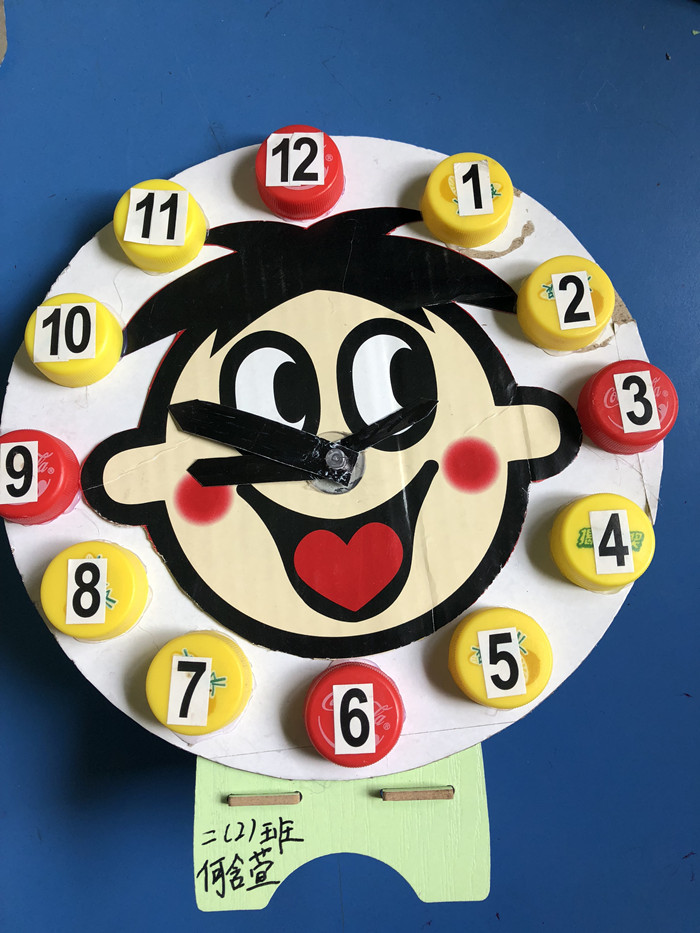 二年級:創(chuàng)意鐘表制作,充分發(fā)揮想象力和創(chuàng)造力,通過“變廢為寶”的方式,將自己心中的鐘面描繪在塑料瓶上、硬紙盒上、卡紙上。孩子的創(chuàng)新思維讓人驚嘆,甚至有孩子用羅馬數(shù)字制作了別樣的鐘面。