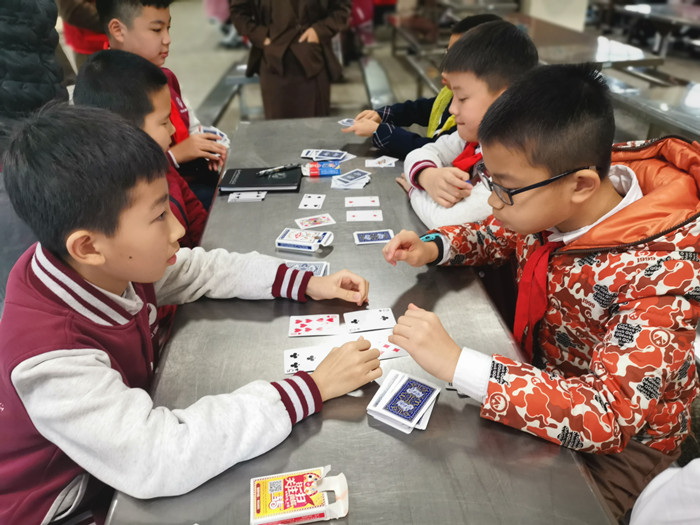 三年級、五年級:“24點挑戰(zhàn)賽”,用小小的撲克牌,凸顯著我們的速算能力。認(rèn)真思考的我們!
