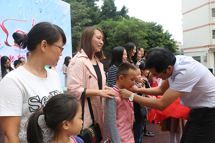 活動還特設了“校園達人”獎,對每個年級里優(yōu)秀組合和個人進行集體頒獎,評出“年級最佳達人”、“學校藝術達人”、“學校體育達人”若干名,并邀請這些達人的家長們到校與孩子一起領獎,分三輪由校領導頒發(fā)達人獎牌,當達人們與家長們一起隨音樂走上紅地毯,全校師生的熱烈掌聲回蕩在整個校園。
