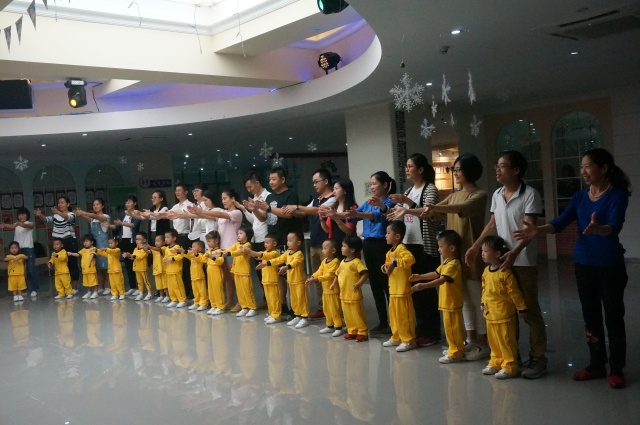 一張張燦爛的笑臉,一雙雙稚嫩的小手,一句句歡快的歌聲,整個(gè)教育城沉浸在一片歡樂海洋中。